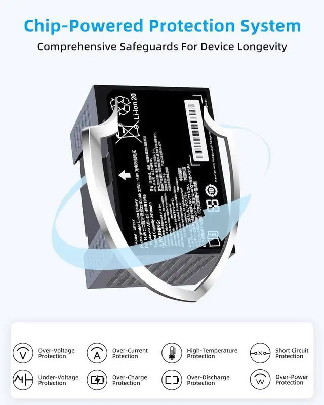 SPECIFICATION : Model Name:ABL-D2A Voltage: 14.4V, Capacity: 32Wh 2220mAh Grade A cells ensure fast charges and low power consumption; Built-in circuit protection ensures both safety and stability. Condition: 100% New; Battery life: More than 1000 cycles.