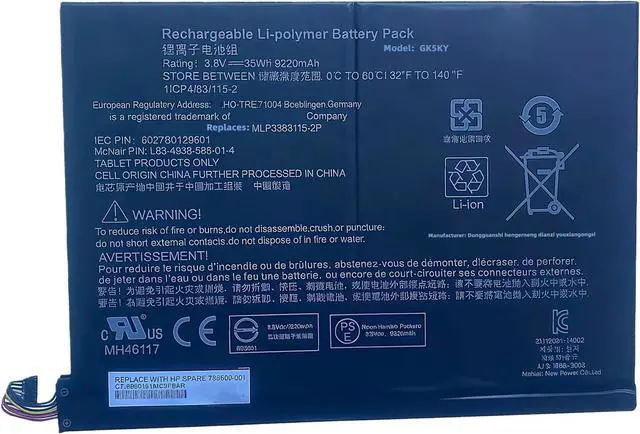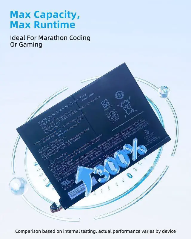 SPECIFICATION : Model Name: MLP3383115-2P Voltage:3.8V // Capacity:35Wh 9220mAh Grade A cells ensure fast charges and low power consumption; Built-in circuit protection ensures both safety and stability. Condition: 100% New; Battery life: More than 1000 cycles.