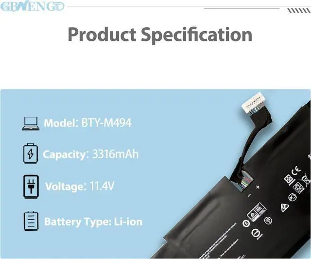 Specifications Model: BTY-M494 Capatity: 39.3Wh3448mAh Voltage:11.4V Color: Black Battery type: Rechargeable Li-ion Battery Condition: 100% brand New from Manufacturer.