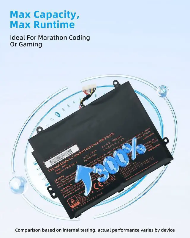 SECURITY AND WARRANTY: JBERY P950BAT-4 laptop batteries have passed strict intelligent detection, such as short circuit protection, over voltage protection, discharge protection, over current protection, which is very important for batterys use cycle and safety. All batteries are equipped with high quality material to ensure good performance. CE, FCC, RoHS certificated. 90 Days Money Return 18 Months Replacement2 Years Tech Assistance