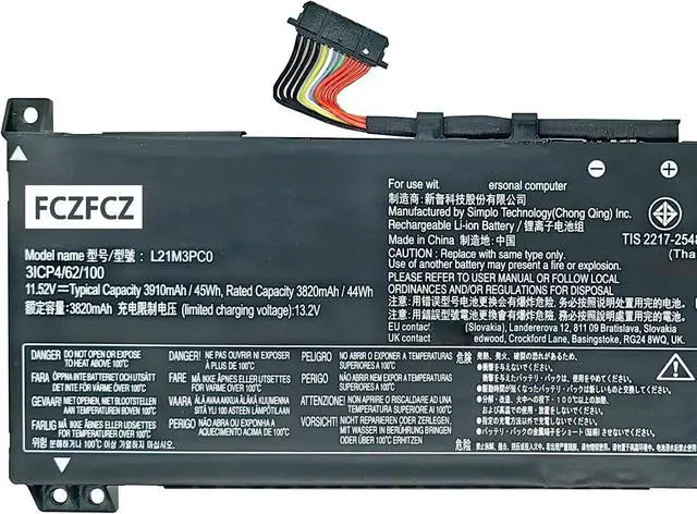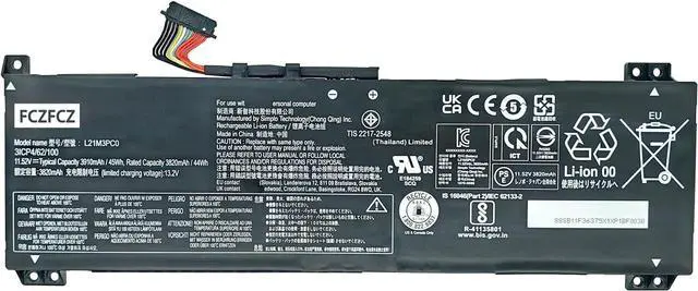 SpecificationsBattery Model:L21M3PC0 // Voltage:11.52V // Capacity:45Wh 3910mAh 3-Cell // Color:Black // Condition:Brand New.