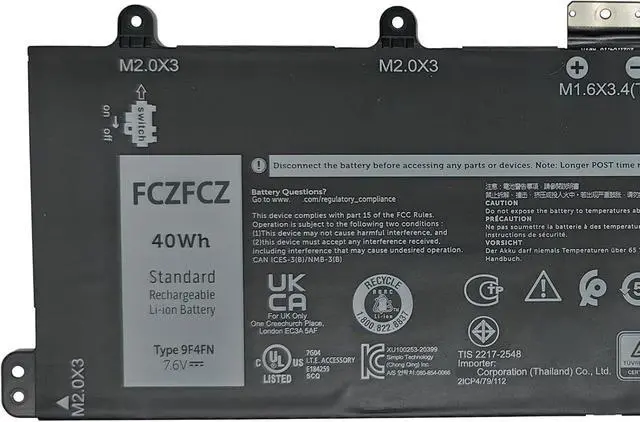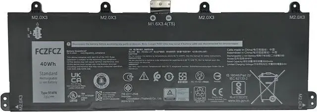 SpecificationsBattery Model:9F4FN // Voltage:7.6V // Capacity:40Wh 5263mAh 4-Cells // Color:Black // Condition:Brand New.