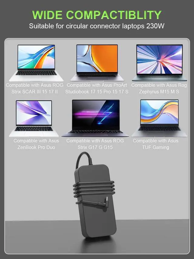 Fast Charging ---With a compact design, the charger is easy to carry and store. Saves more space for power strips, ideal for home, office, and travel. With increase in operating frequency, an innovative stacked design, and an upgraded circuit board structure, new technology makes our latest charger smaller without sacrificing a drop of power. Power up your laptop and give you the productivity & flexibility you need quickly