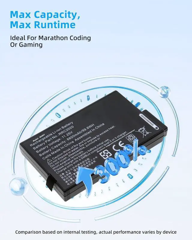 SPECIFICATION : Model Name:RRC2020 Voltage: 11.25V / Capacity: 99.6Wh 8550mAh Grade A cells ensure fast charges and low power consumption; Built-in circuit protection ensures both safety and stability. Condition: 100% New; Battery life: More than 1000 cycles.