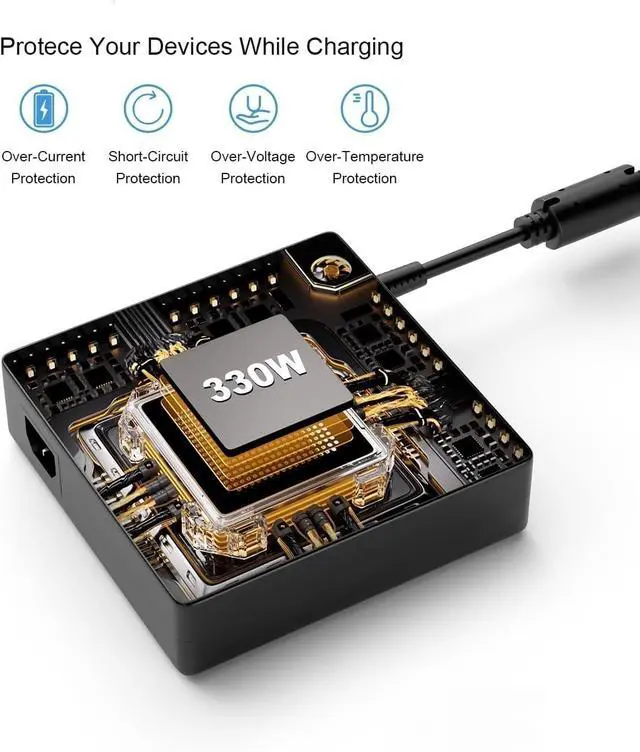 The laptop charger port output up to 330W power delivery enables fast and efficient charging of compatible devices;