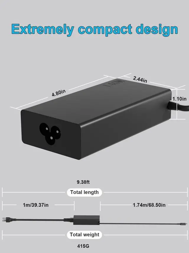 Specification: Input Voltage: 100-240V, 50-60Hz (Worldwide use), Output Voltage: 140W 20V/7A, (also Works for 135W 100W 95W 65W 45W Wattage Devices).Power Jack Connector Type: USB Type C. (It is not fit for laptops devices requiring more than 140W)