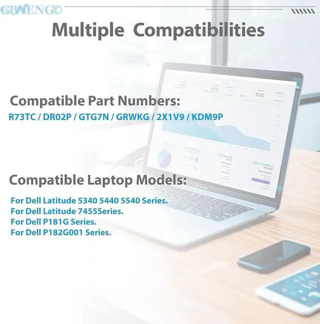 Compatible Modelfor Dell Latitude 3340 3450 3540 3550 5450 7455 Series;for Dell Latitude 14 3440 5440Series for Dell Latitude 15 5540 5550 Series;for Dell Latitude 13 5340 5350 Laptop or 2-in-1 Series (Latitude 5350 supports both 42 Wh and 54Wh battery Laptop) for Dell inspiron 14 Plus 7441 Series for Dell P28F P28F004 P37G P37G004 Series for Dell P170G P170G001 P127F P127F001 P169G P169G001 Series for Dell P165G001 P165G002 P165G003 P181G P181G001 P182G P182G001 Series for Dell Precision 3480 3490 3580 3590 Mobile Workstation Series