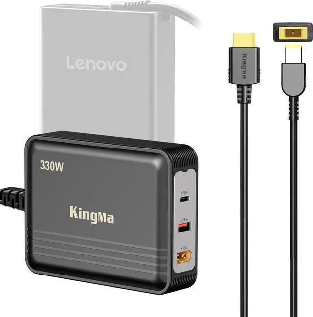 330W single port outputKing Ma laptopt GaN charger design with a XT60 Port,witch can up to 330W single port output,equipt with professional latop cable to charging the professional computer,and there are equiped with a USB-C(100W) and a USB-A(60W) port, for game developers and senior engineers.
