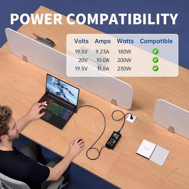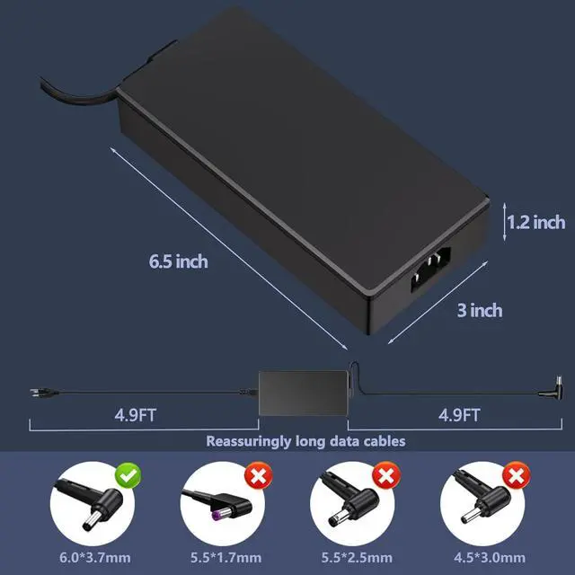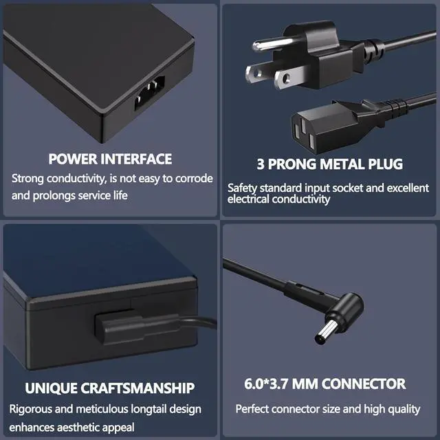 Safety for Asus Laptop Charger: The 230w for Asus charger is equipped with multiple protection measures to prevent short circuits, overvoltage, overcurrent, and overheating, in compliance with national safety standards, ensuring rapid, secure charging for your laptop and letting you swiftly resume work