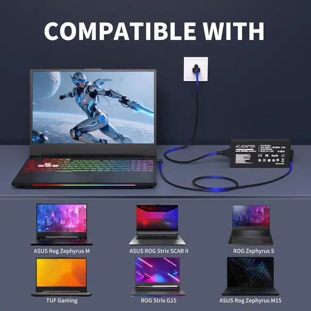 Models Compatible with Asus Charger Laptop: Fit for ASUS ROG Strix SCAR II Gaming Laptop GL704GM-DH74; ROG TUF FX505GD FX505GM FX705GD FX705GE ROG Strix GL504GM ROG Strix Scar II GL704GM ROG Zephyrus S GX531GM GX531GS-AH76 GX531GM-ES005T, ROG GU501G GU501GM; TUF Gaming FX705GM-EW019T ADP-180UB B A17-180P1A ROG 3 GX531GM FX86F ADP-180MB F 9.23A ROG Strix GL703GM-NS73 0A001-00262100 GL704GM-DH74 Series, etc.