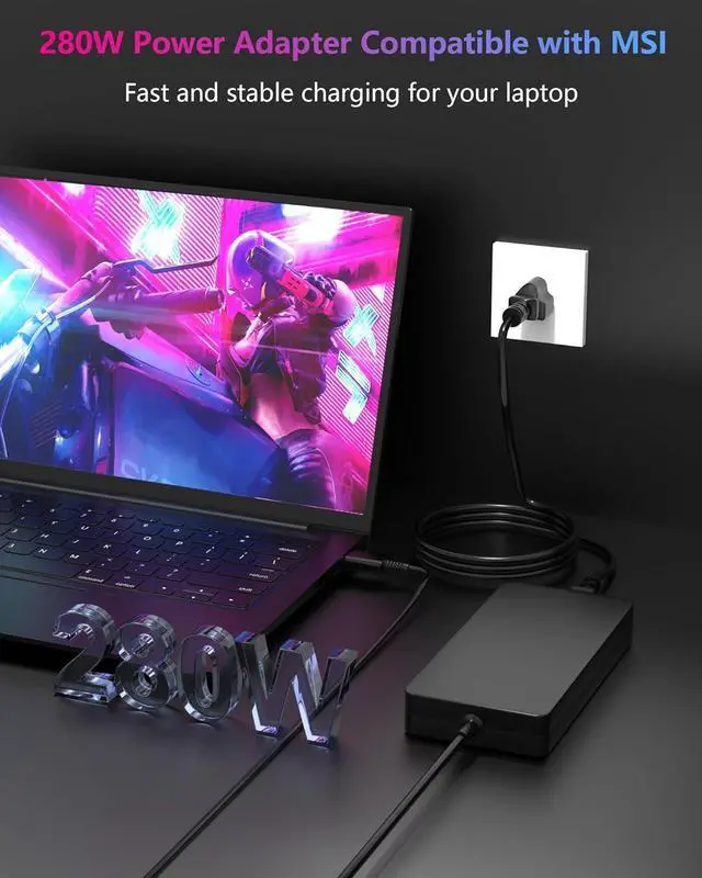 Nivjuky 280W Laptop Charger Compatible with MSI MSI Stealth GS77, GT76 Titan, Raider GE66 GE76, GP66 GP76 Leopard, WE76 WE76-11UX, Vector GP76 GP66 12U, Creator Z16P Z17, GE66 Dragonshield 10SFS, GE76 Dragon Tiamat 10UG 10UH, CLEVO X170SM-G X170KM-G
