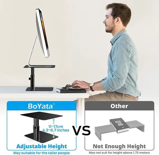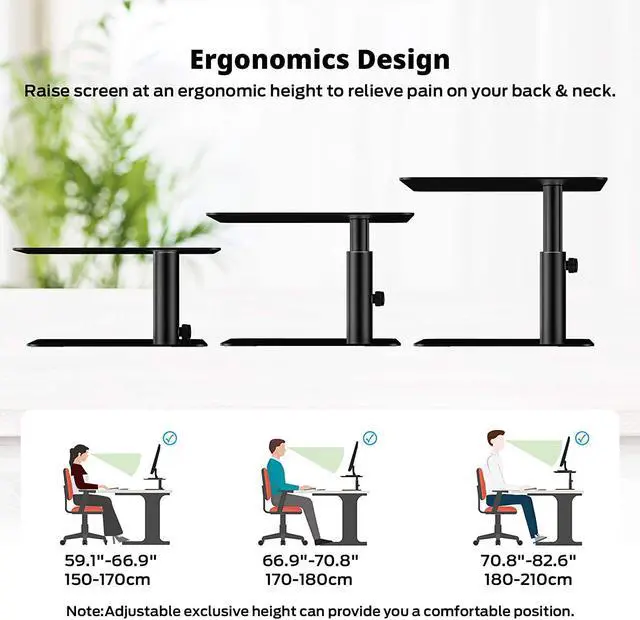 Ergonomic Design: Proper height can keep your eyes and the monitor at the c level, correct to improve viewing comfort of the screen, and help to relieve shoulder pain, neck pain, and back pain.
