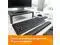 Slim profile minimizes clutter, frees up desk space and provides storage underneath