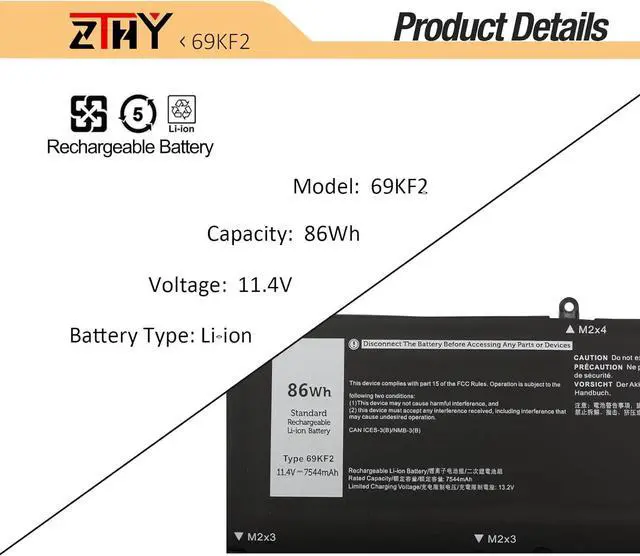 Compatible Part Number69KF2 8FCTC DVG8M 70N2F M59JH P8P1P 070N2F 0P8P1P 0DVG8M 0M59JHCompatible ModelReplacement for Dell XPS 15 9500 Series; Replacement for Dell XPS 15 9510 Series; Replacement for Dell XPS 15 9520 Series; Replacement for Dell XPS 15 9500 2020 Series; Replacement for Dell XPS 15 9500 Core i7 4K UHD Series Compatible ModelReplacement for Dell Precision 5550 2020 Series; Replacement for Dell Precision 5550 Mobile Workstation Series; Replacement for Dell Precision 5560 Mobile Workstation Series; Replacement for Dell Precision 5570 Mobile Workstation Series; Compatible ModelReplacement for Inspiron 16 5620 Series; Replacement for Dell Inspiron 7510 Series; Replacement for Inspiron 16 7610 Series; Replacement for Dell Inspiron 16 Plus 7610 Series; Replacement for Dell Inspiron 16 Plus 7620 7630 Series; Replacement for Dell Inspiron 7620 SeriesCompatible ModelReplacement for Dell P91F P91F001 Series; Replacement for Dell P45E P45E001 Series; Replacement for Dell P45E P45E002 Series; Replacement for Dell P87F P87F002 Series; Replacement for Dell P87F P87F003 Series; Replacement for Dell P100F P100F001 SeriesCompatible ModelReplacement for Dell G7 15 7500 Series; Replacement for Dell G7 15 7500 i7-10750H RTX 2060 (G7 15 Series)Compatible ModelReplacement for Dell G15 5510 Series; Replacement for Dell G15 5511 Series; Replacement for Dell G15 5520 Series; Replacement for Dell G15 5515 Ryzen Edition Series; Replacement for Dell G15 5521 Special Edition Series; Replacement for Dell G15 5525 Series; Replacement for Dell G15 5530 Series; Replacement for Dell G16 7620 7630 SeriesCompatible ModelReplacement for Dell Alienware M15 R3 Series; Replacement for Dell Alienware M15 R3 (2020) Series; Replacement for Dell Alienware M15 R4 Series; Replacement for Dell Alienware M15 R4 (2021) Series;Replacement for Dell Alienware M15 R5 Series;Replacement for Dell Alienware M15 Ryzen Edition R5 Series;Replacement for Dell Alienware M15 R6 Series;Replacement for Dell Alienware M15 R7 Series;Replacement for Dell Alienware M15 R7 AMD Series; Replacement for Dell Alienware M15 2020 ALW15M-5758W SeriesCompatible ModelReplacement for Dell Alienware M16 R1 Series; Replacement for Dell Alienware M16 R1 AMD Series; Replacement for Dell Alienware M17 R3 Series; Replacement for Dell Alienware M17 R3 P45E Series; Replacement for Dell Alienware M17 R4 Series; Replacement for Dell Alienware M17 R3 (2020) Series; Replacement for Dell Alienware M15 R4 (2021) SeriesCompatible ModelReplacement for Dell Vostro 15 7510 Series; Replacement for Dell Vostro 7620 SeriesNoteNot fit for Dell XPS 15 9530( It is suitable for different battery sizes, please note) What do I need to be aware of when I receive a battery?