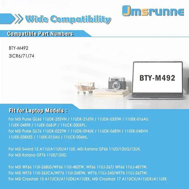 BTY-M492 battery Replacement Part Number: BTY-M492 3ICR6/71/74