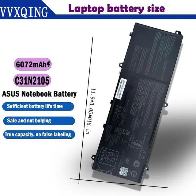 SpecificationsBattery Model: C31N2105| Voltage: 11.61V|Capacity: 70Wh 6072mAh 3-Cell | Color: Black | Condition: Brand New.