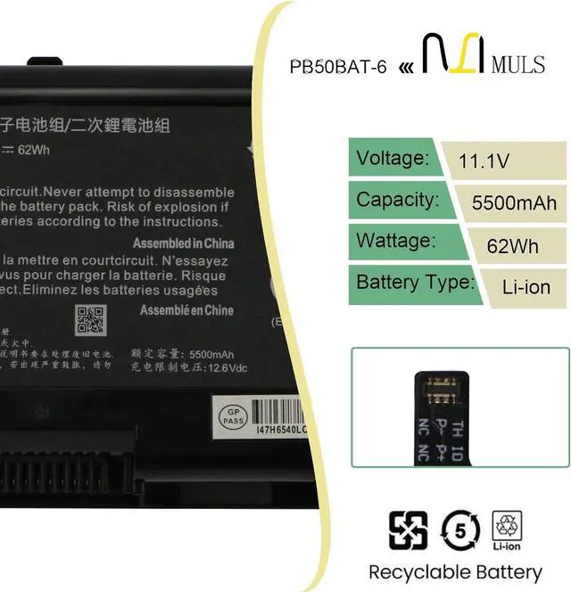Battery SpecificationCapacity:62Wh Voltage: 11.1V.100% brand new. Up to 500 recharge cycles over the life of the battery. High-quality materials and circuit board.