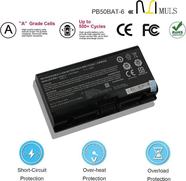 Safety Above AllOur batteries are certified by CE, FCC and RoHS to ensure your safety, and packed with prevention measures like short circuit, overheat and overcharge protection.Our laptop batteries are made with premium materials and circuit boards to ensure performance and durability.