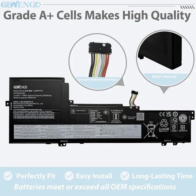 Specifications Model:L23B4PK3 Capatity: 76Wh Voltage:15.08V Color: Black Battery type: Rechargeable Li-ion Battery Condition: 100% brand New from Manufacturer.