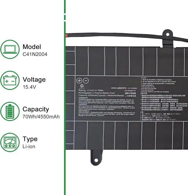 Model: C41N2004 // Voltage: 15.4V // Capacity: 70Wh 4550mAh // Color: Black // Type: Plug & Play Li-ion Battery.