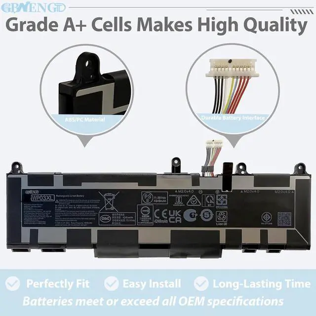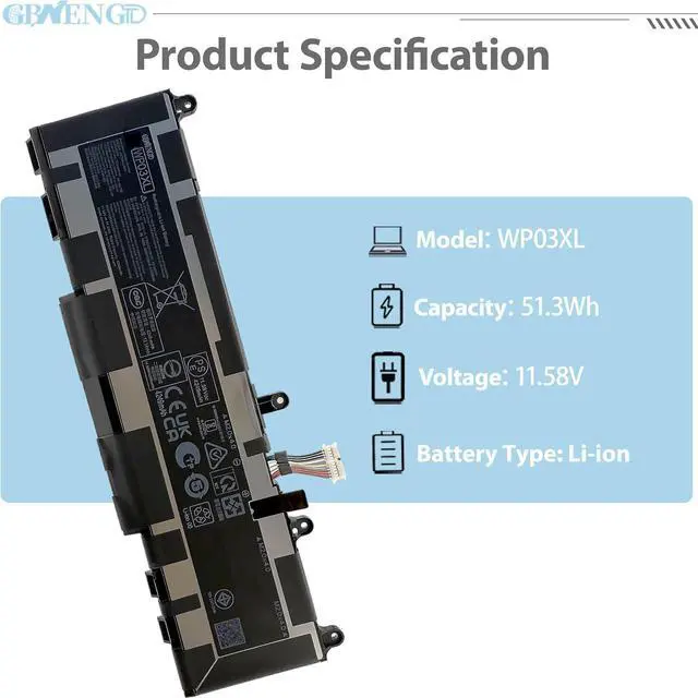 Specifications Model: WP03XL Capatity: 51.3Wh/4249mAh 4-cell Voltage:11.58V Color: Black Battery type: Rechargeable Li-ion Battery Condition: 100% brand New from Manufacturer.