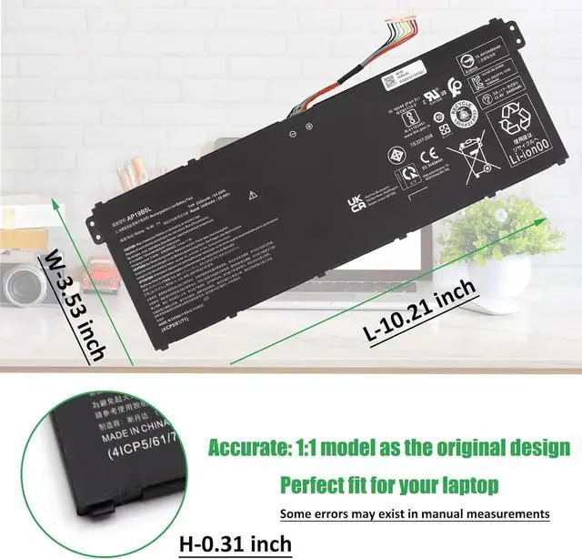 BATTERY SPECIFICATION: Model Name: AP19B5L; Voltage: 15.4V; Capacity: 54.6Wh / 3550mAh; Battery Type: Li-ion; Condition: 100% brand new from manufacturer; Color: Black; Packaged come with: 1*battery + battery installation screwdrivers + 1*instruction for laptop battery