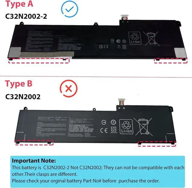 Specifications Model: C32N2002-2 Capatity: 96Wh/8380mAh Voltage:11.55V Color: Black Battery type: Rechargeable Li-ion Battery Condition: 100% brand New from Manufacturer.
