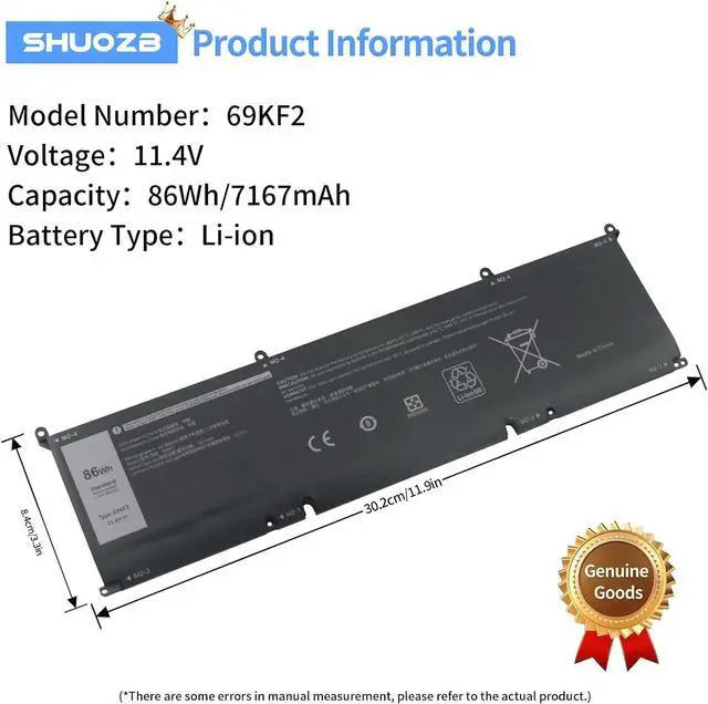 HIGH CAPACITY & LONG-LASTING PERFORMANCE 86Wh/7167mAh 6-cell Li-ion battery delivers extended runtime up to 6-8 hours (depending on usage), perfect replacement for Dell 69KF2 original battery