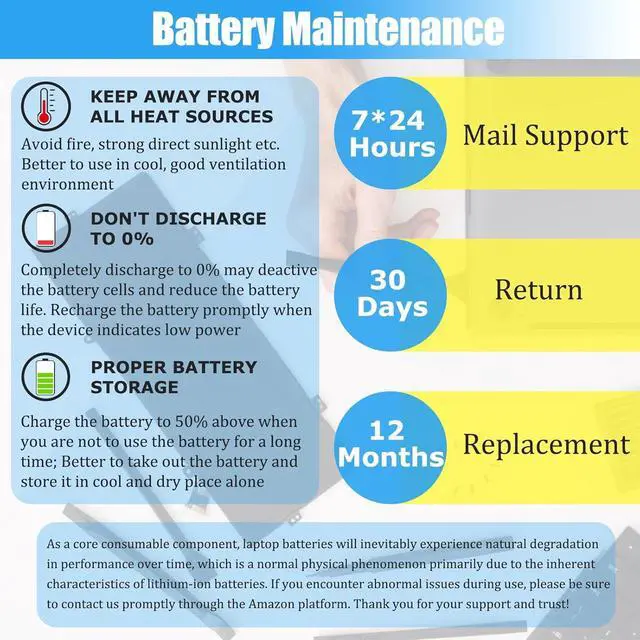 Avoid Over-discharging: Do not discharge the battery to 0%, as this may damage the battery cells and accelerate battery aging. When the battery level is extremely low, the laptop may shut down suddenly