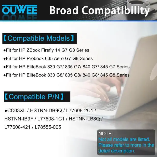 Compatible Part NumberFor HP zbook firefly 14 inch g8 battery, CC03XL HSTNN-DB9Q L77608-2C1 HSTNN-IB9F L77608-1C1 HSTNN-LB8Q L77608-421 L78555-005