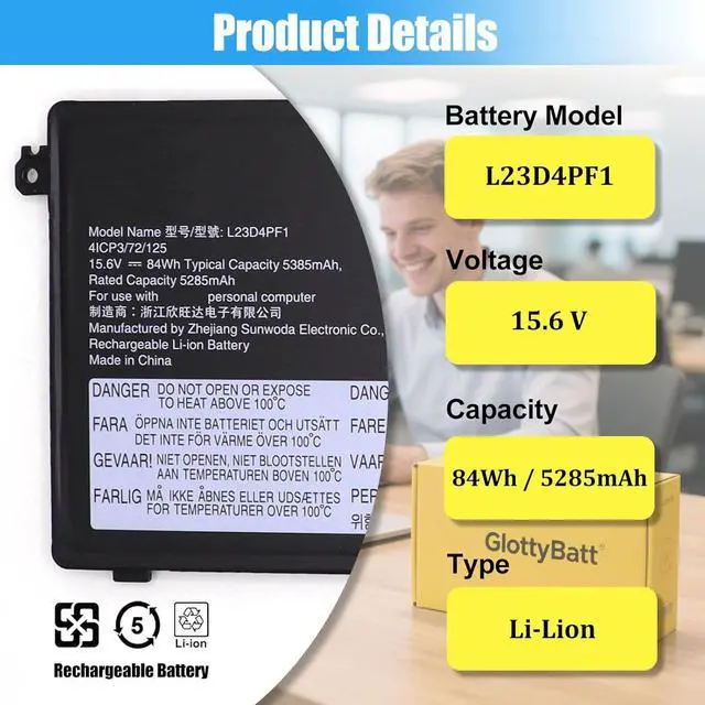 COMPATIBLE LAPTOP MODELS: This Laptop battery L23D4PF1 replacement for Lenovo IdeaPad Pro 5-14AKP10 (Type: 83JL) Series; for Lenovo IdeaPad Pro 5-14ASP10 (Type: 83LR) Series; for Lenovo IdeaPad Pro 5-14IAH10 (Type: 83JK) Series; for Lenovo IdeaPad Pro 5-14IMH9 (Type: 83D2) Series; for Lenovo IdeaPad Pro 5-14AHP9 (Type: 83D3) Series; for Lenovo IdeaPad Pro 5-16IMH9 (Type:83D4) Series; for Lenovo IdeaPad Pro 5-16AHP9 (Type: 83D5) Series