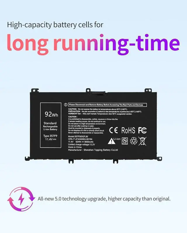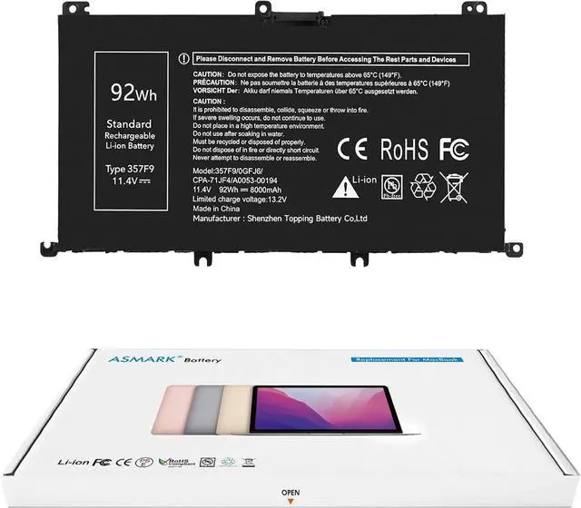 Battery Models: 357F9; This battery features a full charge capacity of 92 Wh 8000 mAh, with a voltage of 11.4 V