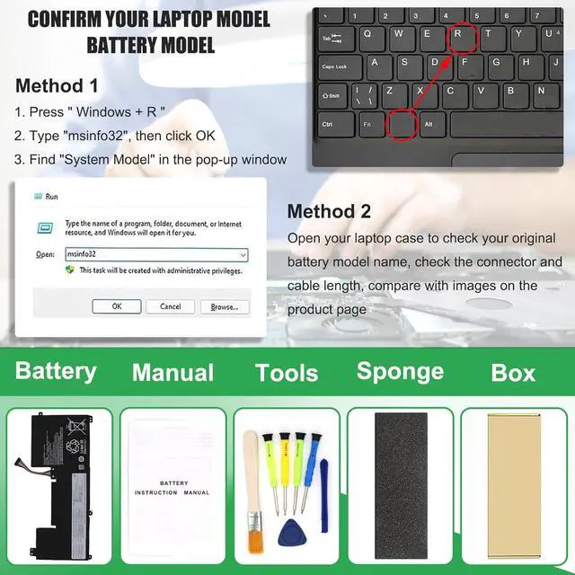 IMPORTANT NOTE: Please ensure that your original battery model matches the one in the picture or is consist