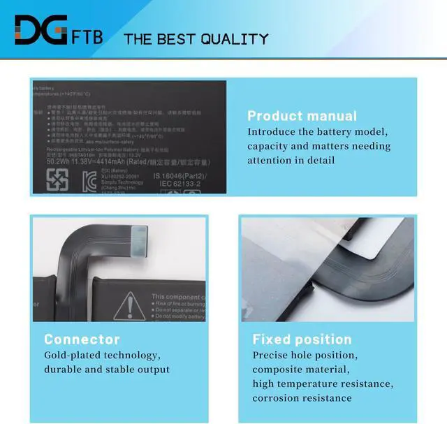 • DG QualityGrade A cells mitigate the risk of battery leakage and maximize output stability. Built-in circuit protection, enhances safety of usage and extends battery life.
