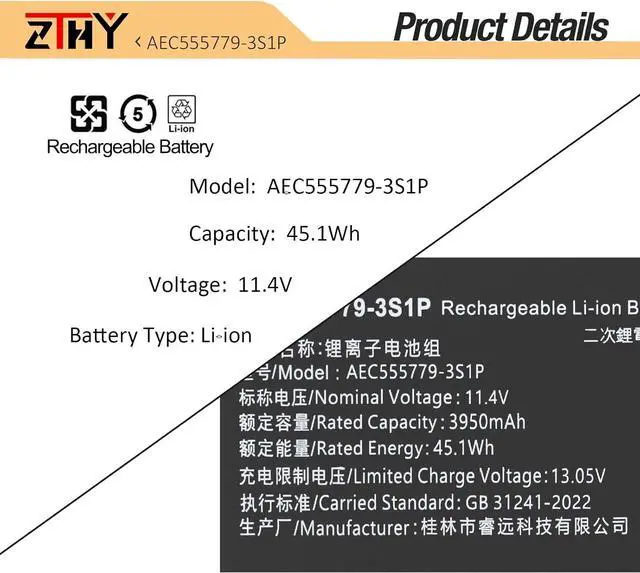 Specifications: Battery Type: Li-ion; Color: Black; Battery Condition: Brand New; Voltage: 11.4V. Capacity: 45.1Wh/ 3950mAh; Battery Cell: 3-Cell