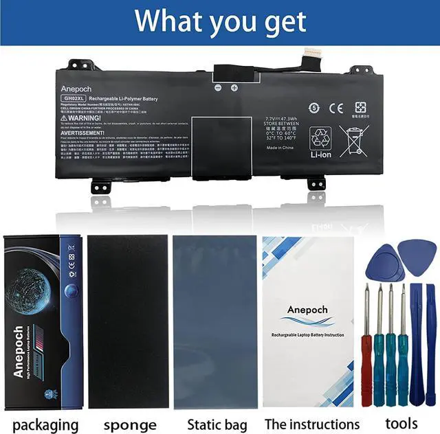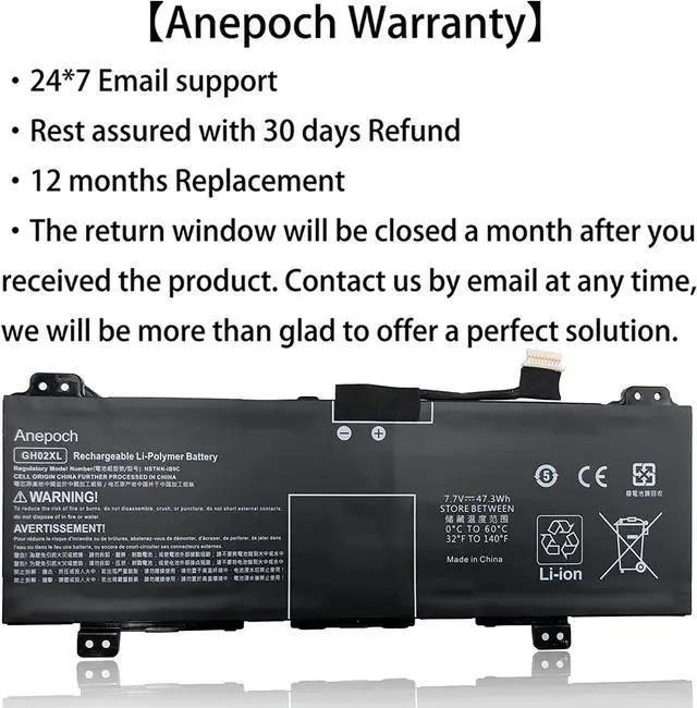 Model: GH02XL ; Voltage: 7.7V ; Capacity: 47.3Wh 6000mAh.