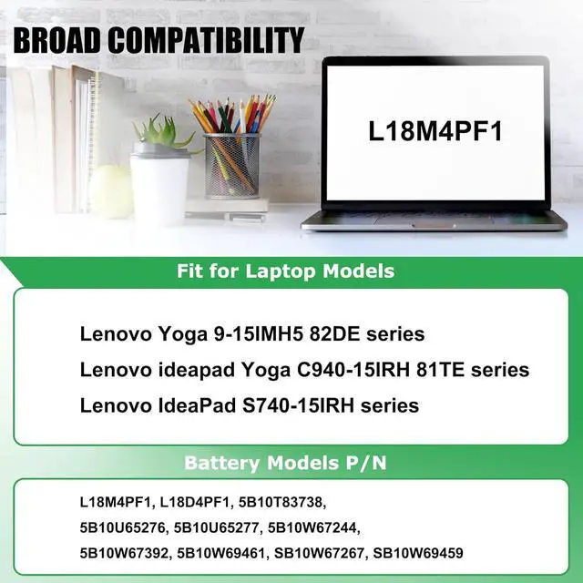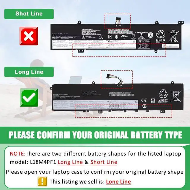 COMPATIBLE PART NUMBER: Battery L18M4PF1 L18D4PF1 5B10U65277 5B10U65276 5B10W67244 SB10W67267 5B10T83738 5B10W67392 5B10W69461 (Note: There are 2 different shapes for the L18M4PF1 battery, they are NOT compatible with each other. The battery in this listing we sell is Long Line, please confirm your original battery shape before placing the order)