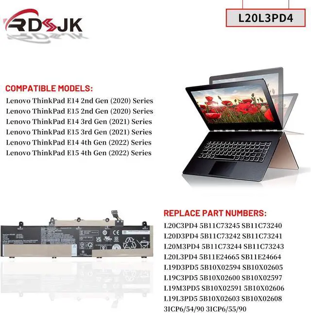 Compatible Models: Fit for Lenovo ThinkPad E14 Gen 2 (Type 20T6, 20T7, 20TA, 20TB) Series; Fit for Lenovo ThinkPad E14 Gen 3 (Type 20Y7, 20YD, 20YE, 20YF) Series; Fit for Lenovo ThinkPad E14 Gen 4 (Type 21EB, 21EC, 21E3, 21E4) Series; Fit for Lenovo ThinkPad E15 Gen 2 (Type 20T8, 20T9, 20TD, 20TE) Series; Fit for Lenovo ThinkPad E15 Gen 3 (Type 20YG, 20YH, 20YJ, 20YK) Series; Fit for Lenovo ThinkPad E15 Gen 4 (Type 21E6, 21E7, 21ED, 21EE) Series