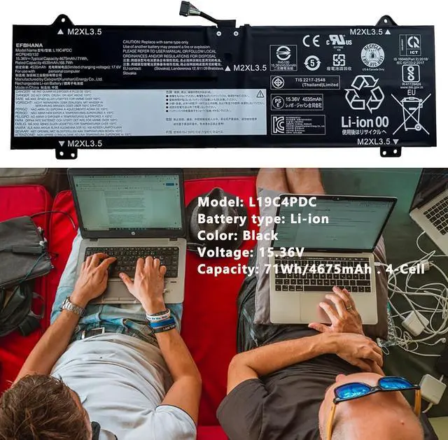 SpecificationsModel: L19C4PDC // Battery type: Li-ion // Voltage: 15.36V // Capacity: 71Wh/4675mAh // 100% New from Manufacturer. Top circuit boards and smart chip