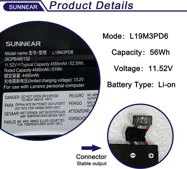 Compatible Part Number L19M3PD6 L19L3PD6 L19C3PD6 L19D3PD6 5B10X49077 5B10X49073 5B10X49075 5B10X49072