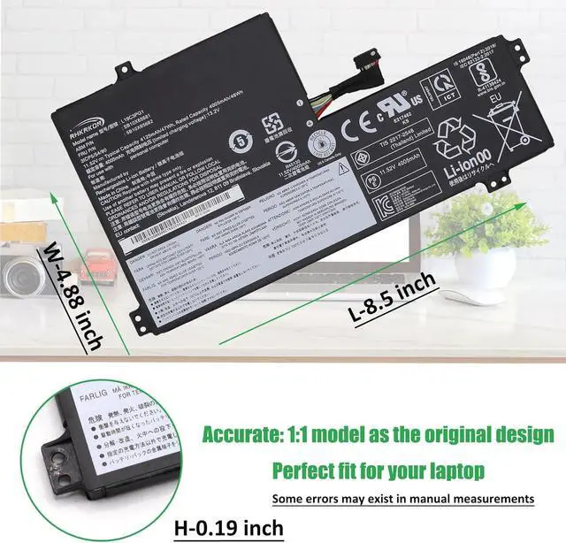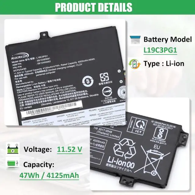 BATTERY SPECIFICATION: Model Name: L19M3PG1; Voltage: 11.52V; Capacity: 47Wh / 4125mAh; Battery Type: Li-ion; Condition: 100% brand new from manufacturer; Color: Black; Packaged come with: 1*battery + battery installation screwdrivers + 1*instruction for laptop battery