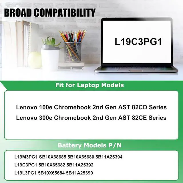COMPATIBLE LAPTOP MODELS: Fit for Lenovo 100e Chromebook 2nd Gen AST 82CD series, Lenovo 300e Chromebook 2nd Gen AST 82CE series, Lenovo ideapad 3 CB-11AST05 82H4 series