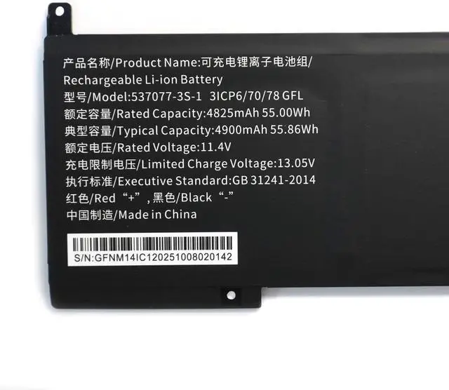 Battery Type:Li-ion Voltage:11.4V Capacity: 55Wh 4825mAh