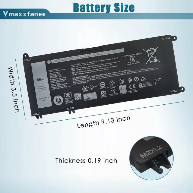 56Wh 4WN0Y Compatible P/N4WN0Y 4WNOY 04WN0Y M245Y 9P3NW JYFV9 G4MX4 4ICP5/57/79.