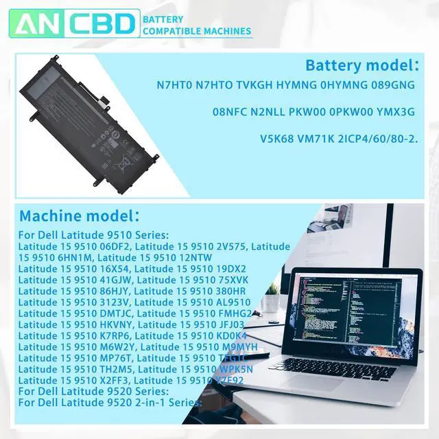 Compatible Models: Replacement for Dell Latitude 9510 Series; Replacement for Dell Latitude 9520 Series; Replacement for Dell Latitude 9520 2-in-1 Series; Replacement for Dell P94F P95F P95F001 P94F001.