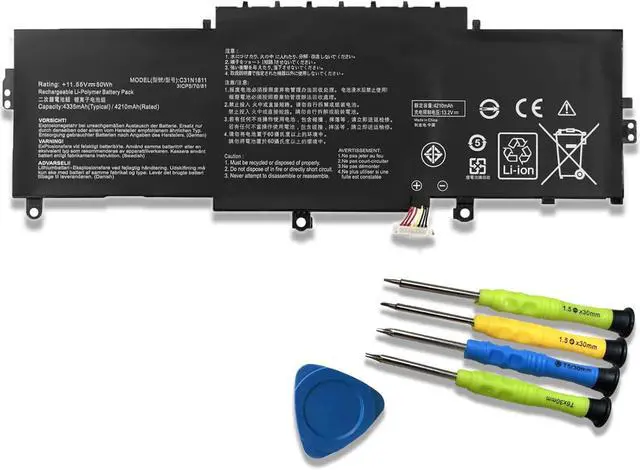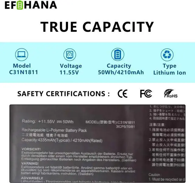 SpecificationsModel: C31N1811 // Battery type: Li-ion // Voltage: 11.55V // Capacity: 50Wh 4335mAh // 100% New from Manufacturer. Top circuit boards and smart chip