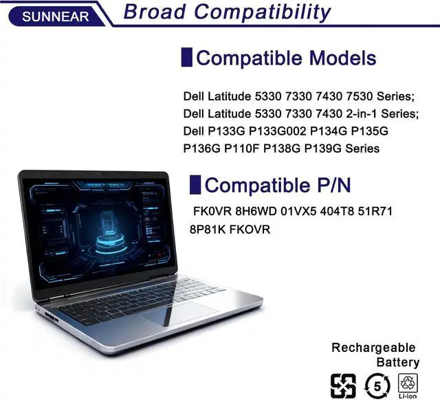 Compatible Laptop/Notebook ModelsDell Latitude 5330 7330 7430 7530 Series; Dell Latitude 5330 7330 7430 2-in-1 Series; Dell P133G P133G002 P134G P134G002 P135G P135G002 P136G P136G002 P110F002 P110F P138G P138G002 P139G P139G002 Series