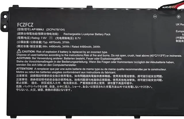 SpecificationsBattery Model:AP16M4J // Voltage:7.6V // Capacity:37Wh 4870mAh // Color:Black // Condition:Brand New.