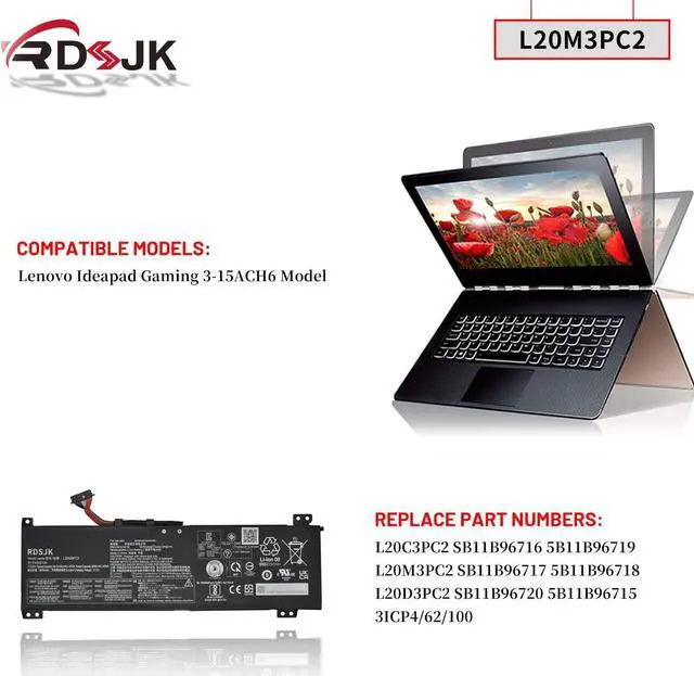 Compatible Models: Fit for Lenovo Ideapad Gaming 3-15ACH6 Model 82K20015US 82K200UTUS Series, Fit for Lenovo Legion 5-15ITH6H Laptop 82JH Series, Fit for Lenovo Legion 5-15ITH6 Laptop 82JK Series, Fit for Lenovo Legion 5-15ACH6H Laptop 82JU Series, Fit for Lenovo Legion 5-15ACH6 Laptop 82JW Series, Fit for Lenovo Legion 5-15ACH6A Laptop 82NW Series, Fit for Lenovo ideapad Gaming 3-15ACH6 82K1 Series, Fit for Lenovo ideapad Gaming 3-15IHU6 Laptop 82K2 82K20015US 82K200UTUS Series