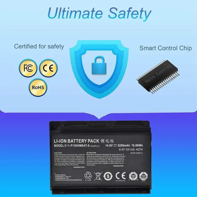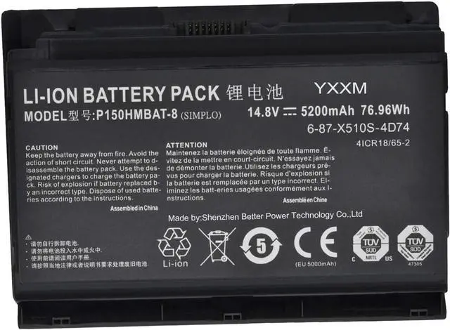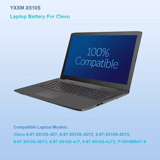 Compatible Part Numbers:6-87-X510S-4D7, 6-87-X510S-4D72,6-87-X510S-4D73,6-87-X510S-4J7, 6-87-X510S-4J72, P150HMBAT-8 Notebook Battery for Clevo.
